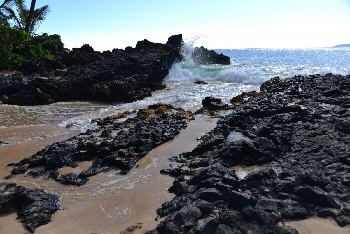 Waves and Lava at Secret Beach, Maui, Hi